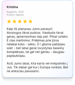 Mūsų kelionių ekspertas susisieks su Jumis ir sukurs individualiai pritaikytą kelionę pagal Jūsų viziją. Jei detaliai užpildytumėte mūsų formą, galėtume užtikrinti, kad Jūsų patirtis būtų tikrai išskirtinė.