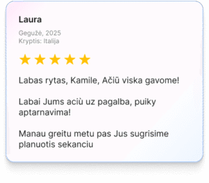 Užsisakykite nuotolinį ar gyvą susitikimą mūsų biure (Lvivo g. 101, VC „Park Town“) prie puodelio kavos ar ant masažinio gulto su VR akiniais ir mėgaukitės kelionės planavimu, pritaikytu būtent Jums.